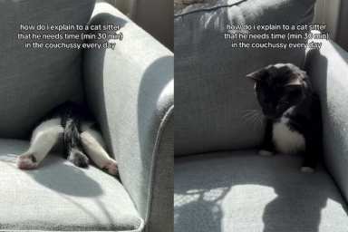 A Tuxedo cat named Skipper and his relationship with the couch is a mystery in this hilarious Instagram video from…